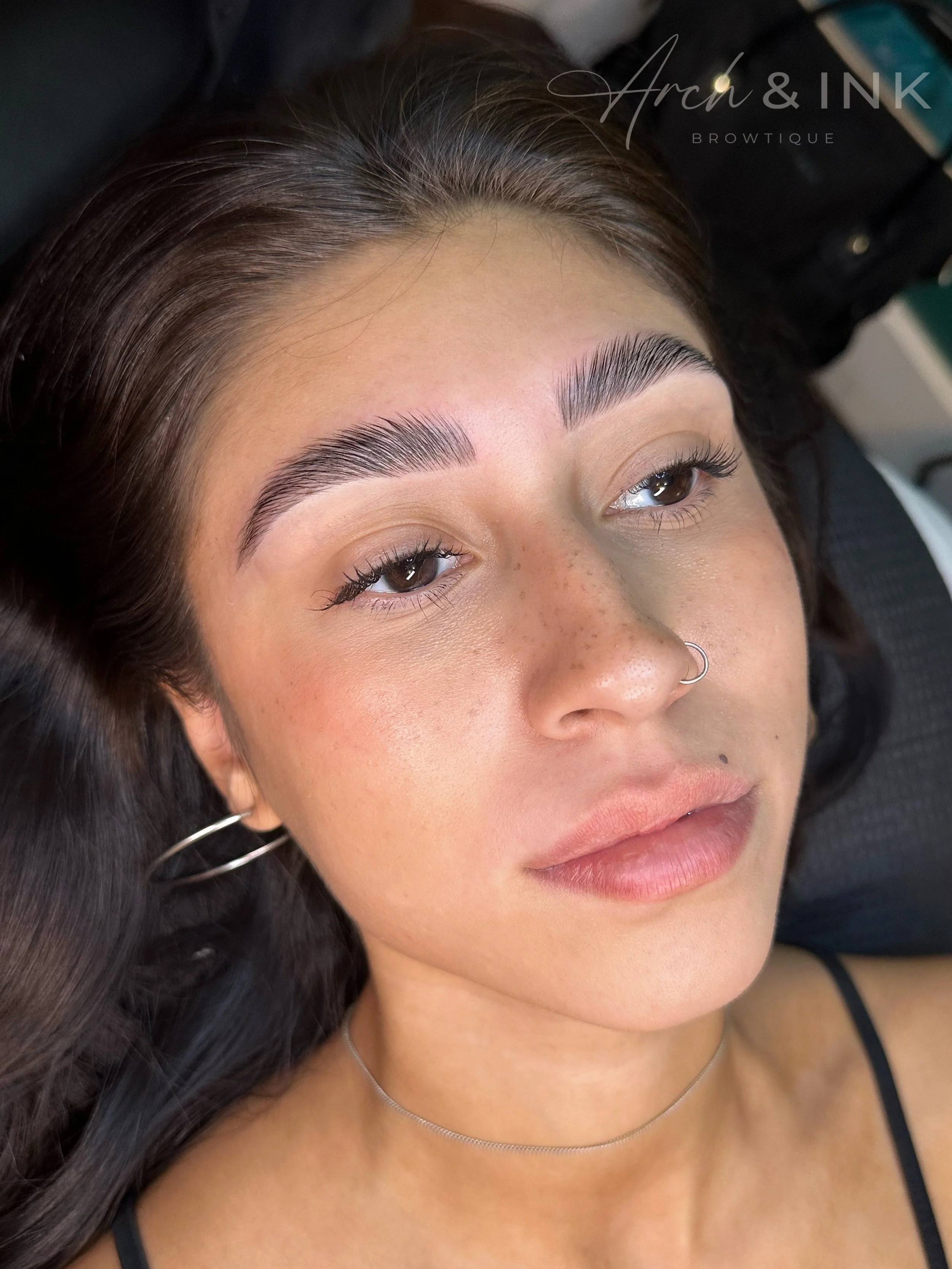 Nano brows are a form of cosmetic tattoo that mimics the look of hair strokes to create hyper-realistic eyebrows. To create nano strokes, a handheld machine is used. This is different from microblading which is done using a manual handheld tool to create hair strokes.